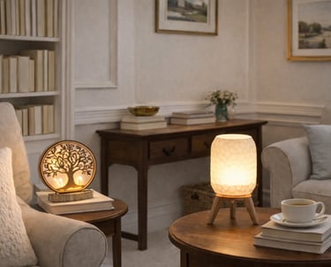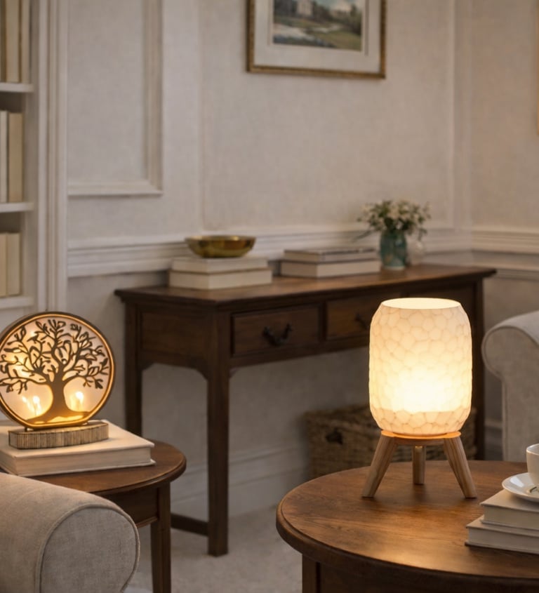 Des objets décoratifs et luminaires choisis avec soin pour créer une ambiance chaleureuse, élégante et personnelle, du mur à la lumière.