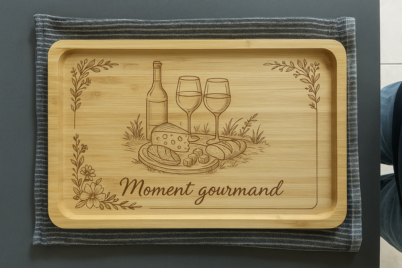 Élevez vos moments apéritifs avec notre planche en bambou personnalisée, où chaque gravure est une œuvre d'art conçue exclusivement pour vous.