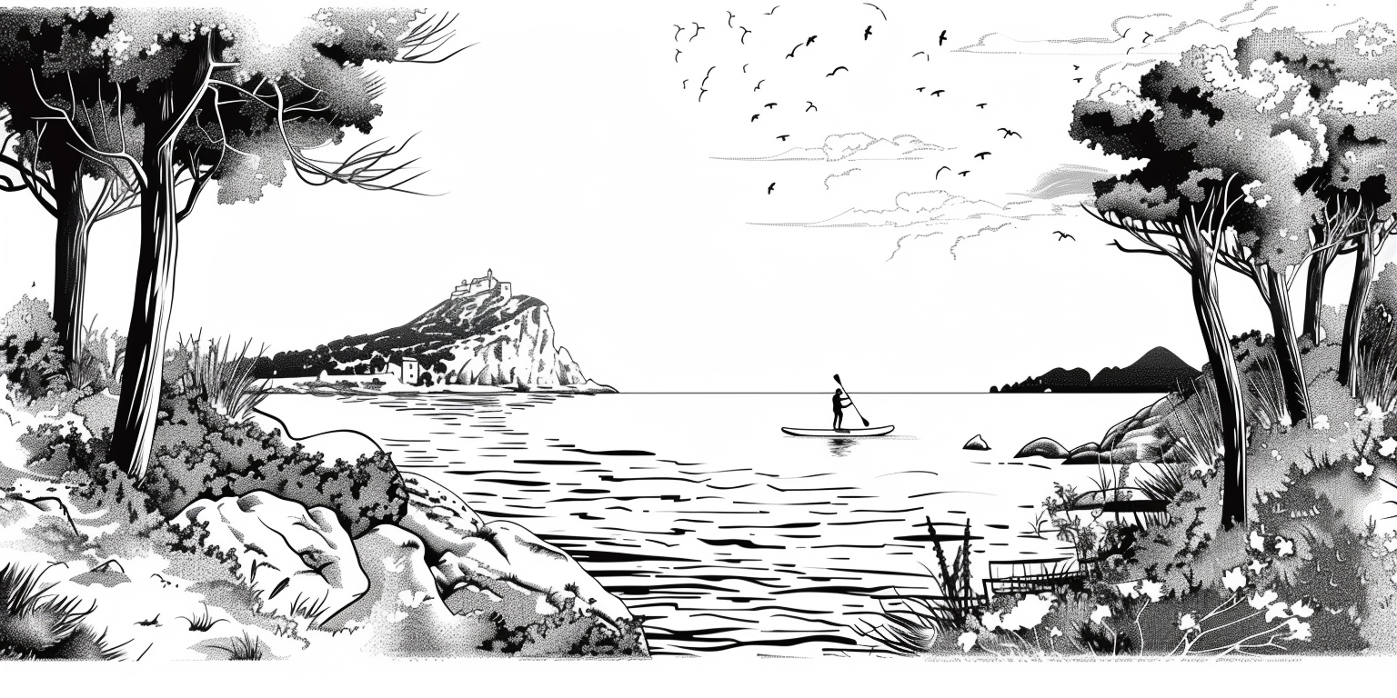 Exemple : "Jean-Pierre, debout sur sa planche de paddle. Il glisse paisiblement sur les eaux calmes des calanques de Marseille. Les falaises majestueuses se dressent en arrière-plan. "