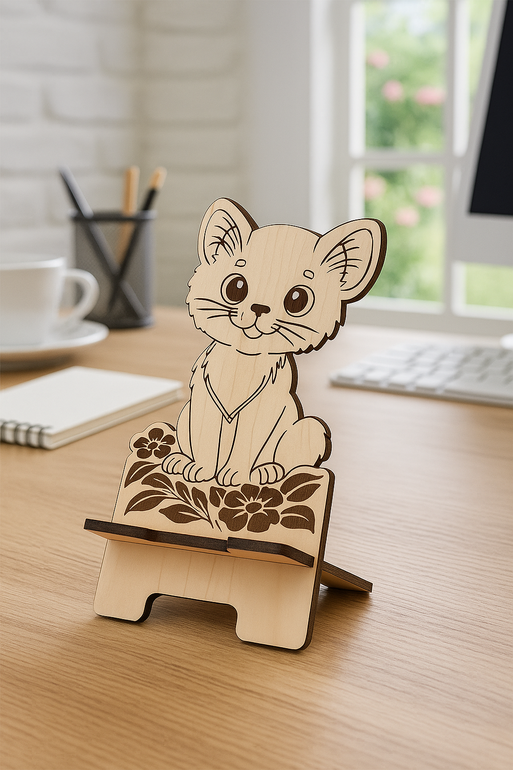 Ce support téléphone en bois gravé est à la fois pratique et trop chou. Parfait pour suivre une recette en cuisine, regarder une vidéo ou juste poser ton smartphone avec style.