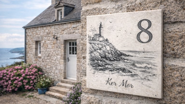Je prends le temps de comprendre le lieu, son histoire, son usage et les contraintes réelles : intérieur ou extérieur, passage du public, environnement, durée de vie attendue. À partir de là, je conçois une proposition graphique adaptée au projet et au lieu. Le dessin n’est jamais générique : il est pensé pour s’intégrer naturellement à l’espace concerné. Avant toute gravure, le visuel est présenté et validé par écrit.