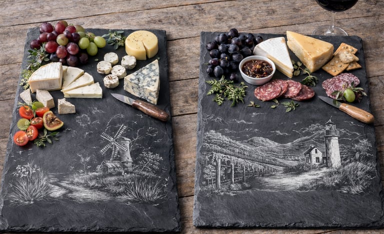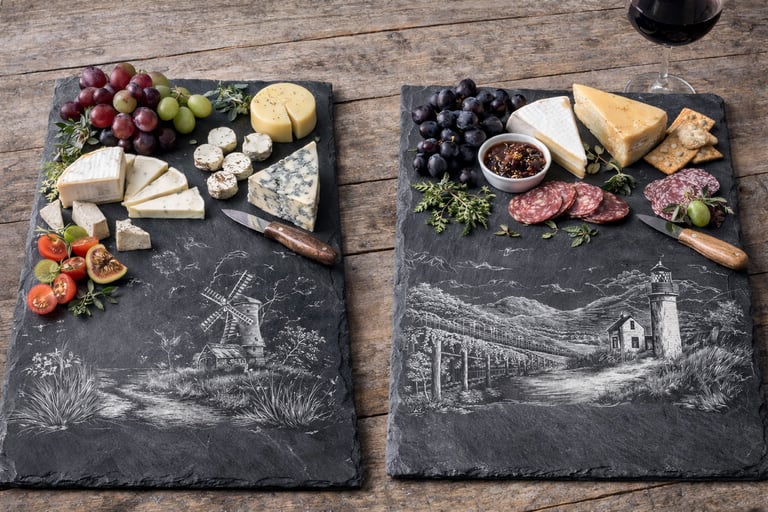 Plateaux fromages, plateaux sushis, supports de présentation ou pièces décoratives fonctionnelles.