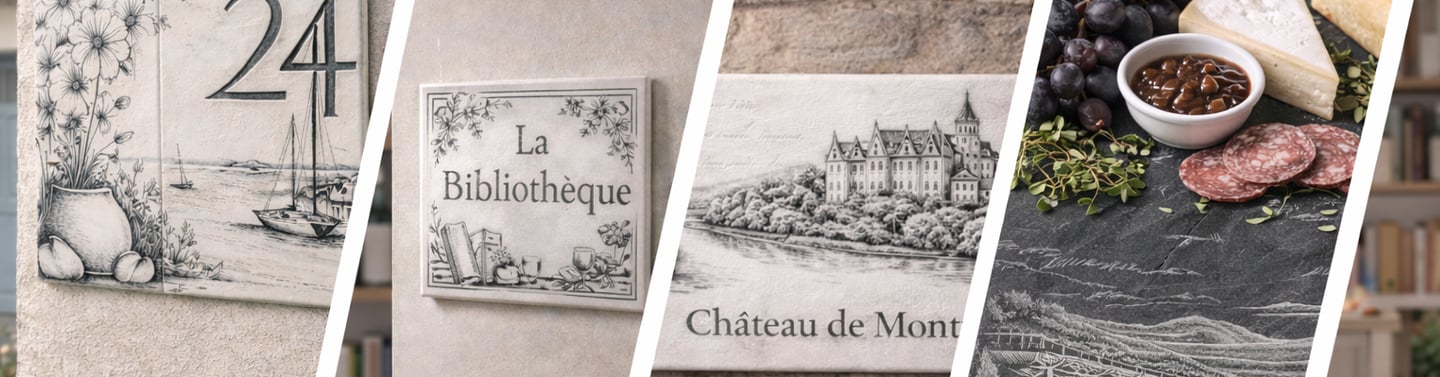 Gravure artisanale sur faïence et ardoise